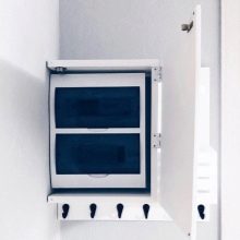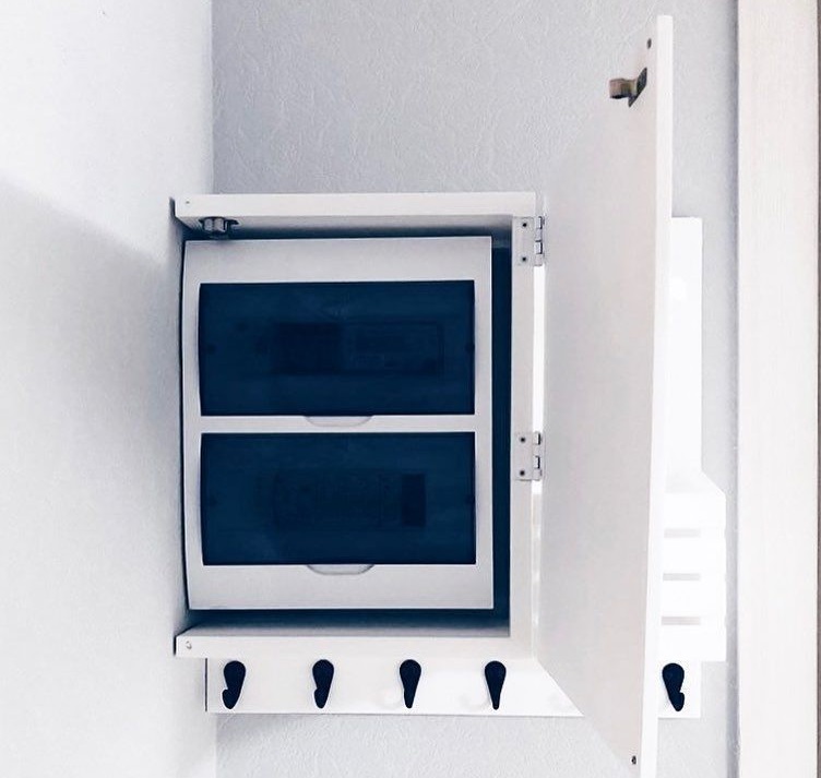 Heutzutage ist es sehr beliebt, einen Schlüsselhalter zum Aufhängen an einer Schalttafel zu bestellen. Dieses Modell verschließt es vor neugierigen Blicken und ermöglicht bei Bedarf einen einfachen Zugang zur Klappe. Das Paneel ist an speziellen Scharnieren montiert. Kann in jeder Farbe hergestellt werden, einschließlich schwarz, weiß, silber, vernickelte Haken.
