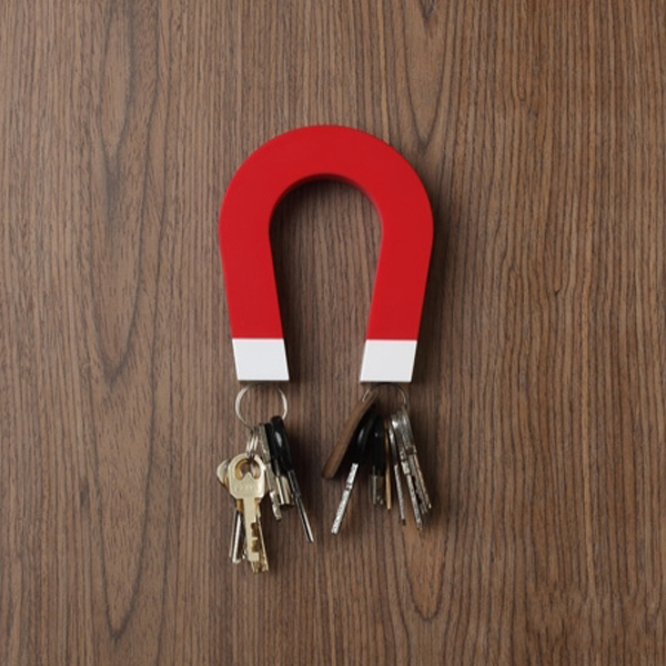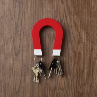 - Ein großer und starker Magnet kann den Schlüsselhalter an der Wand im Flur ersetzen. Metallschlüsselbindungen werden von einem Magnetfeld angezogen und hängen gut sichtbar, bis sie gebraucht werden. Das Plus ist das Fehlen jeglicher Haken.
