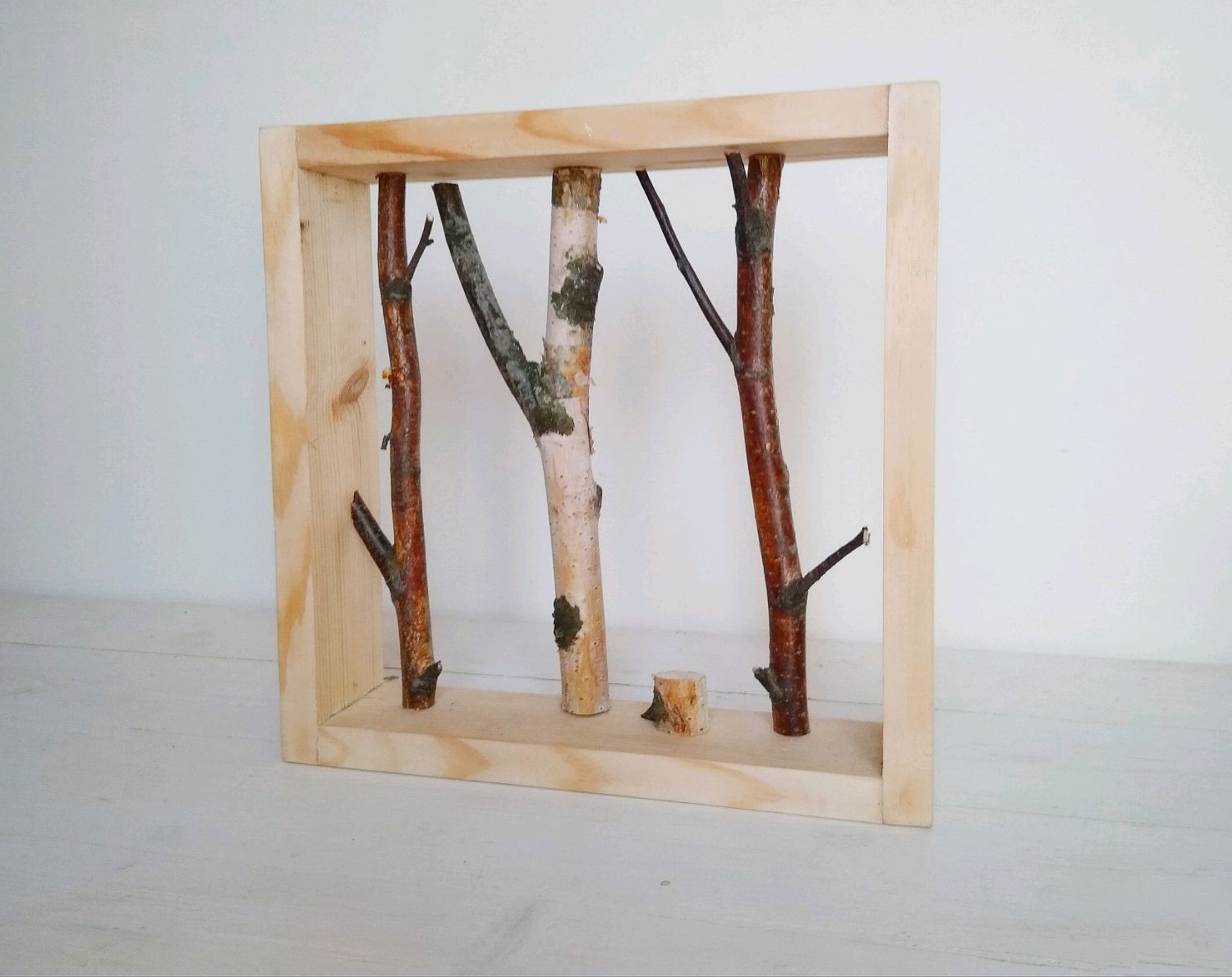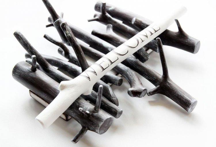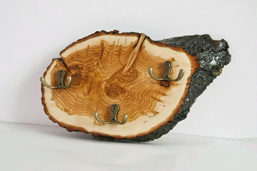 Eine solche Haushälterin wird von Liebhabern des Öko-Stils geschätzt. Es wird sich als wirklich einzigartig herausstellen, denn in der Natur gibt es keine identischen Zweige. Sie können die Rinde retten, indem Sie nur beschädigte Stellen mit grobem Schleifpapier entfernen. Es ist ratsam, den Ast mit Holzlasur zu bedecken, die die Textur des Baumes betont und seine Oberfläche zuverlässig schützt. Es ist auch unbedingt erforderlich, die Zweige zu lackieren. Es ist bequemer, ein Spray zu verwenden. Haken können durch Zweige und Zweige ersetzt werden.