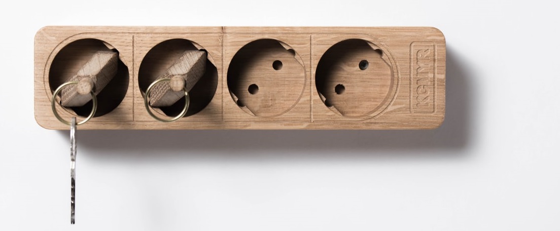 Wenn Sie nicht beanspruchte Paneele aus alter Technik mit Löchern für Stecker haben, besteht die Möglichkeit, einen sehr stilvollen Schlüsselhalter zu erstellen. Für ein Produkt im Geiste des Jugendstils benötigen Sie zusätzlich zum Paneel Stecker, die als Schlüsselhaken dienen.
