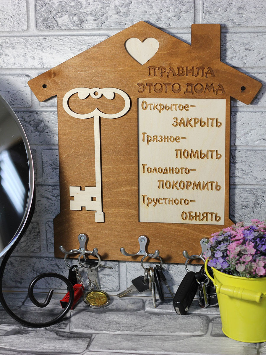 - In einer großen Familie ist es sehr praktisch, einen Schlüsselhalter mit personalisierten Fächern zu verwenden. Dies organisiert und verhindert Argumente, dass jemand das falsche Bündel genommen hat. Bilder, schöne Unterschriften mit Namen - ein modernes und kreatives Design für eine Haushälterin.