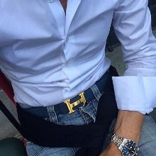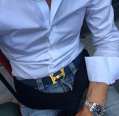 Manchmal werden Wendegürtel so hergestellt, dass eine der Seiten ohne Muster und Verzierungen glatt ist und die Rückseite mit geprägten Oberflächen hergestellt wird. Auch französische Marke Hermes stellt dünne Herrengürtel mit einer kleinen Schnalle in Form eines silbernen oder goldenen Sechsecks her, in dem sich der Buchstabe "H" befindet. Muster mit einer Schnalle in Form eines kleinen Rechtecks mit einem Einsatz mit kleinen Strasssteinen gelten als originelle Option. Ein solcher Herrengürtel wird an fast jeder Person schön und elegant aussehen.