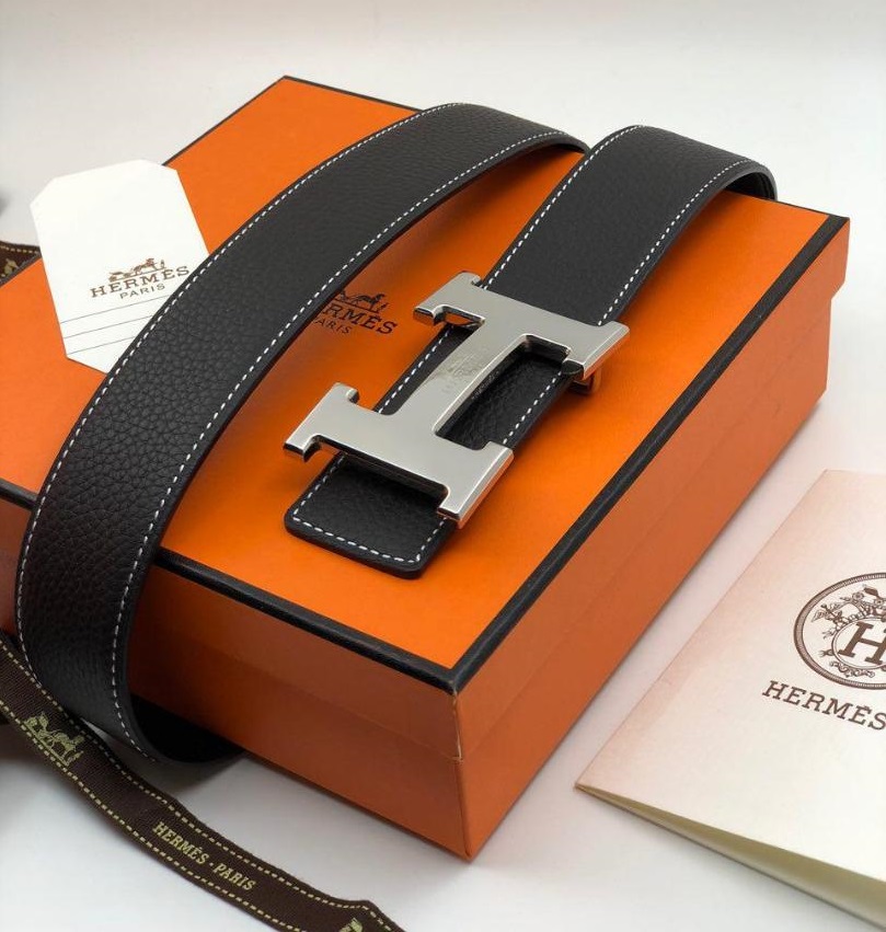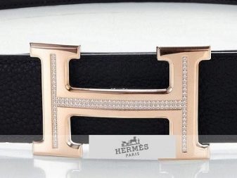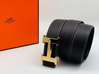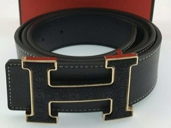 Derzeit produziert diese französische Marke eine Vielzahl von Gürteln für Herren. Eine beliebte Option sind solche klassischen Lederwaren mit geringer Breite mit Schnalle. in Form des Buchstabens "H"... Meist sind sie in Schwarz, Dunkelblau, Beige, Braun, Rot oder Blau gestaltet. Oftmals ist die Rückseite solcher Herrengürtel in einer anderen Farbgebung ausgeführt. Die Schnalle für verschiedene Modelle kann in Gold, Silber, Weiß oder Schwarz gefertigt werden.