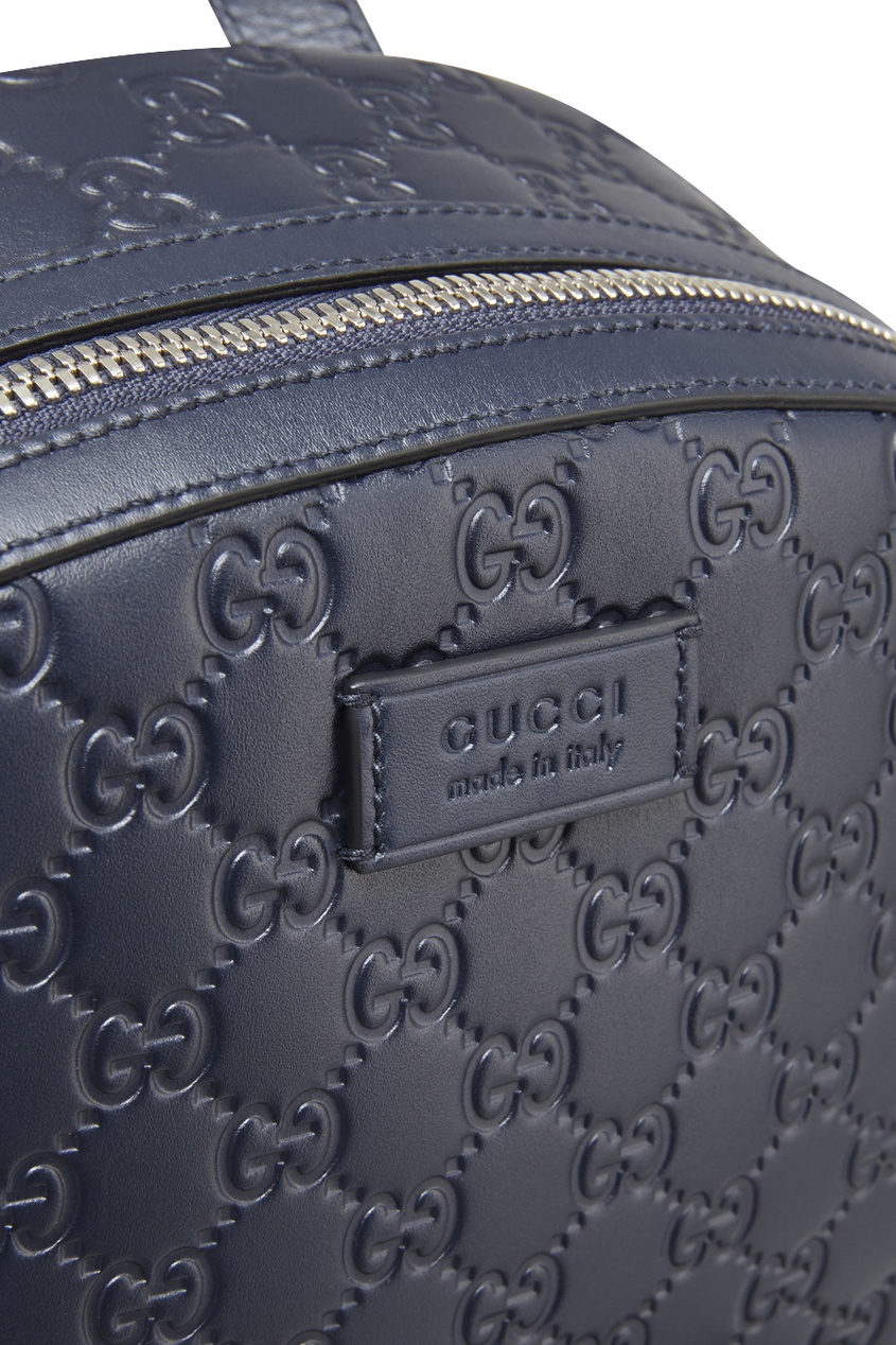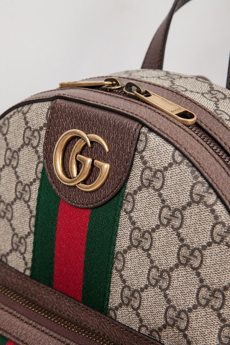 - Rucksack aus charakteristischem geprägtem Leder und eine externe Reißverschlusstasche. Der Artikel ist in der klassischen Herbst-Winter-Kollektion 2019 enthalten. Aus echtem Leder gefertigt, ist die Oberfläche mit der Marke GG graviert. Die Kosten betragen 145.000 Rubel.