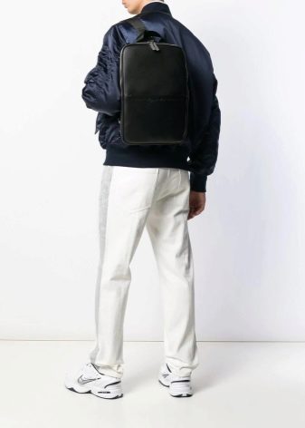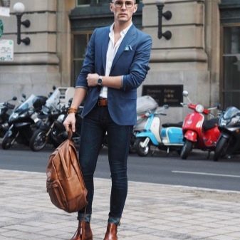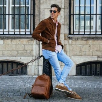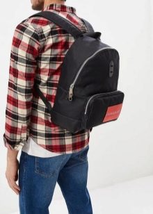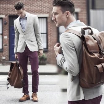 - braunes Leder der rucksack wird mit einer jacke, einem hemd und sogar einer krawatte gut aussehen. Aber es sollte nicht viele Prägungen, Gravuren und andere dekorative Elemente haben.