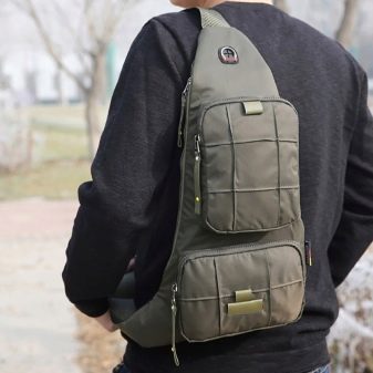 Bei der Auswahl eines einsträngigen taktischen Rucksacks besondere Aufmerksamkeit müssen auf den Riemen gezogen werden... Es sollte weich und breit sein. Stellen Sie sicher, dass der Artikel über eine belüftete Rückseite und bequeme Taschen verfügt... Dies gewährleistet eine komfortable Bedienung.