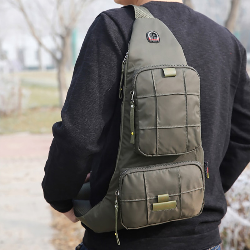 Modelle mit Einzelriemen kann leicht vom Rücken zur Brust bewegt werden, ohne die Ausrüstung auszuziehen. Ein solcher Rucksack hängt nicht an der Seite und stört Ihre Hände nicht. Auch von unterwegs hat der Inhaber Zugriff auf alle Abteilungen. Dies ist eine großartige Alternative zu einer Tasche. Eingurt-Rucksäcke werden in Menschenmengen oder öffentlichen Verkehrsmitteln oft zur Brust bewegt, um den Inhalt vor Eindringlingen zu schützen.