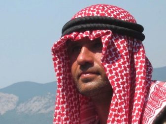 Shemagh wird oft als Kopfschmuck verwendet. Diese Option ist bei orientalischen Vertretern des stärkeren Geschlechts beliebt. Für europäische Männer ist diese Form des Kopftuchtragens laut Stylisten nicht ganz naheliegend. Bei heißem Wetter schützt ein arabisches Kopftuch einen Mann jedoch perfekt vor den sengenden Sonnenstrahlen.In den meisten Fällen wird die Arafatka mit einem runden Reifen am Kopf befestigt: Wir formen aus einem arabischen Schal ein Dreieck, mit dem wir den Kopf bedecken und fixieren. Die baumelnden Enden sind hinten ineinander verschlungen.