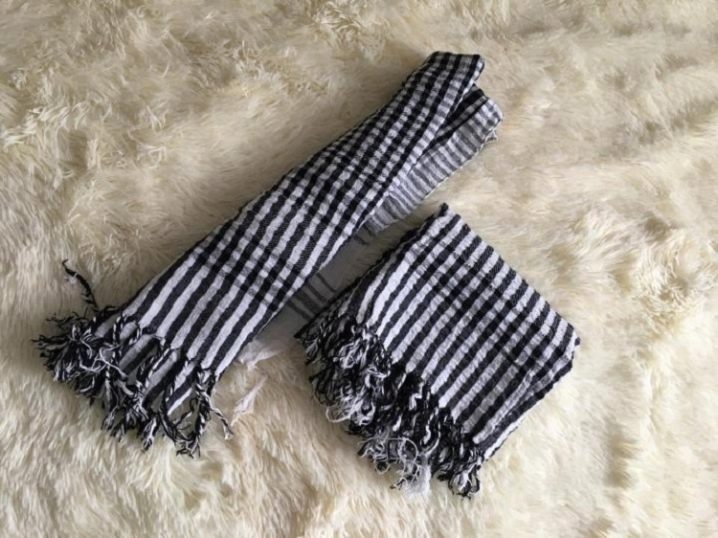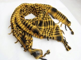 Das Muster auf dem arabischen Schal entsteht durch das Weben von Fäden. Arafats werden aus Woll- und Baumwollfäden gewebt. Auf dem modernen Markt gibt es Produkte aus Viskose oder Synthetik. Shemagi variieren auch in der Dichte. Ein Schal aus leichtem Material ist für die Sommerzeit relevant und die Wollversion ist für Herbst und Winter geeignet. Arafatka passt gut zum sportlichen Stil. Junge Kerle binden am liebsten einen Shemagh in Kombination mit Jeans und hohen "Armee"-Stiefeln. Stilvoll gebundenes Arafat um den Hals harmoniert auch mit hellen T-Shirts.