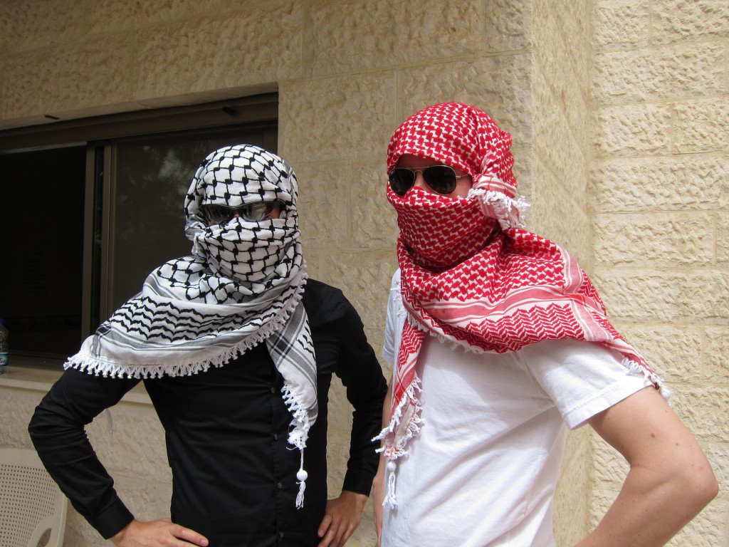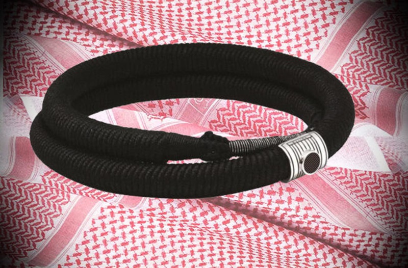 Moderne Männer verwenden spektakuläre arabische Kopftücher nicht nur für ihren vorgesehenen Zweck. Zum Beispiel sieht eine Arafatka, die an einem Taschengürtel oder an der Hüfte befestigt ist, originell aus. Viele junge Leute bevorzugen Keffiyeh als sperriges Armband. Eine weitere originelle Option ist die Dekoration eines arabischen Schals, der um den Hals gebunden wird, mit verschiedenen Ikonen.