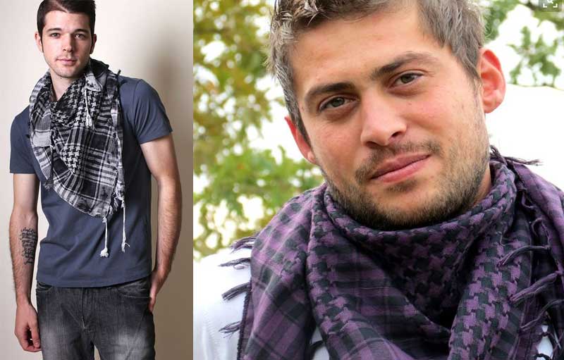 Außerdem, viele Männer ziehen es vor, einen Shemagh in Form einer Krawatte zu binden. Dazu wird der Schal ebenfalls schräg gefaltet und die „Ecke“ nach hinten gelegt. Die Enden der Arafatka sind auf der Brust schön gerade. Eine arabische Schalkrawatte sieht hell, eingängig und ungewöhnlich aus. Vergessen Sie nicht, dass der Arafatka in Form eines Tourniquets aufgerollt und auch um den Hals gewickelt werden kann. Dazu wird ein arabischer Schal auf die Brust gelegt und die Enden zu Bündeln gefaltet. Um den Hals wickeln und vorne binden.