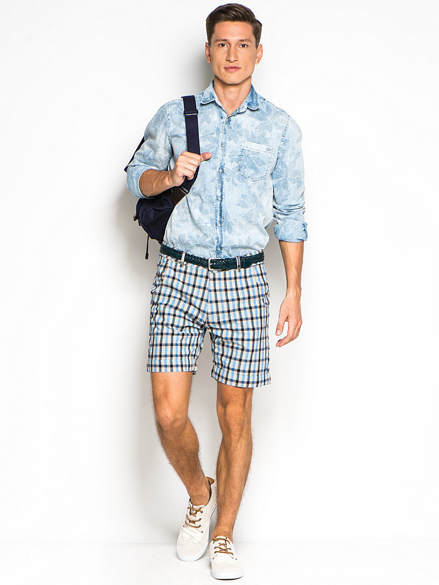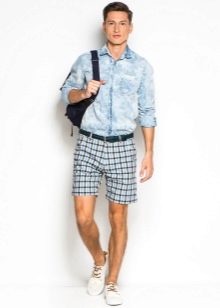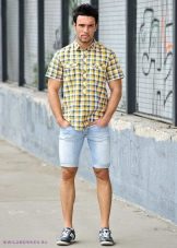 - Baumwolle gilt als die erfolgreichste Option zum Nähen von kurzen Sommerhosen für Herren. Hemden in einem Käfig fühlen sich sehr angenehm an, sie haben ein helles Muster. Baumwollprodukte erfordern keine zusätzliche Pflege, sie sind leicht zu reinigen und zu waschen.