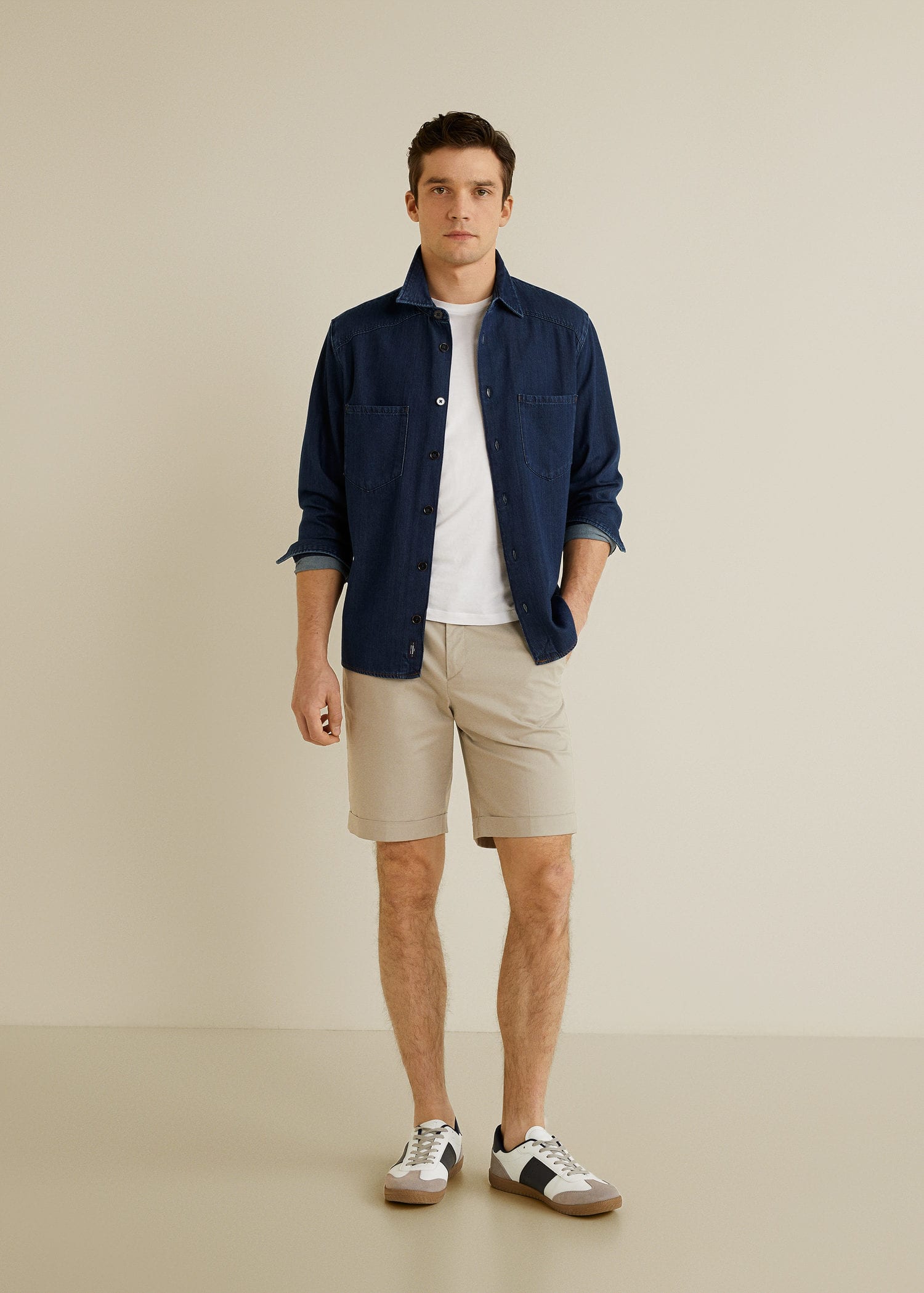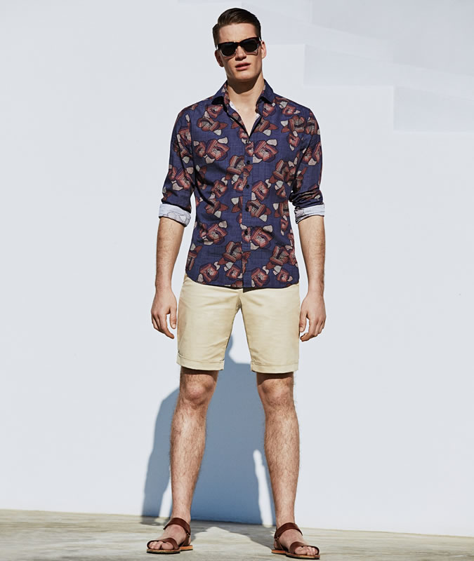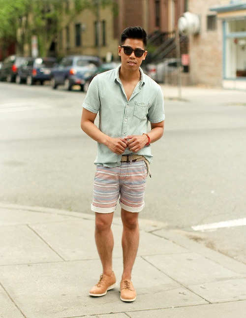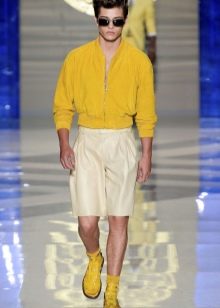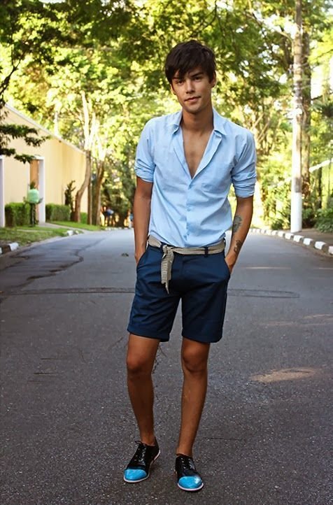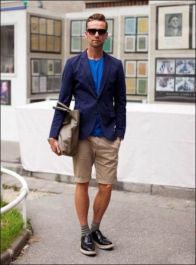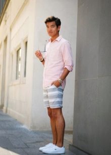 Shorts werden am besten mit Hemden oder T-Shirts getragen. Auch eine leichte Sommerleinenjacke kann ein ähnliches Ensemble schmücken.