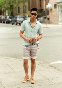 - Produkte aus gestreiftem Stoff. In der warmen Jahreszeit sind gestreifte Shorts am relevantesten. Im Kleiderschrank kann ein Streifen nicht nur auf Shorts, sondern auch auf Hemden, Jacken und sogar Socken vorhanden sein. Leichte Seersucker-Shorts aus Crinkle-Stoff mit Streifen sorgen auch am heißesten Tag für ein angenehmes Tragegefühl. Sie lassen die Luft gut durch und schränken die Bewegung nicht ein.