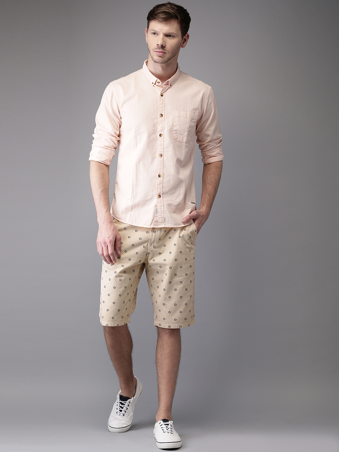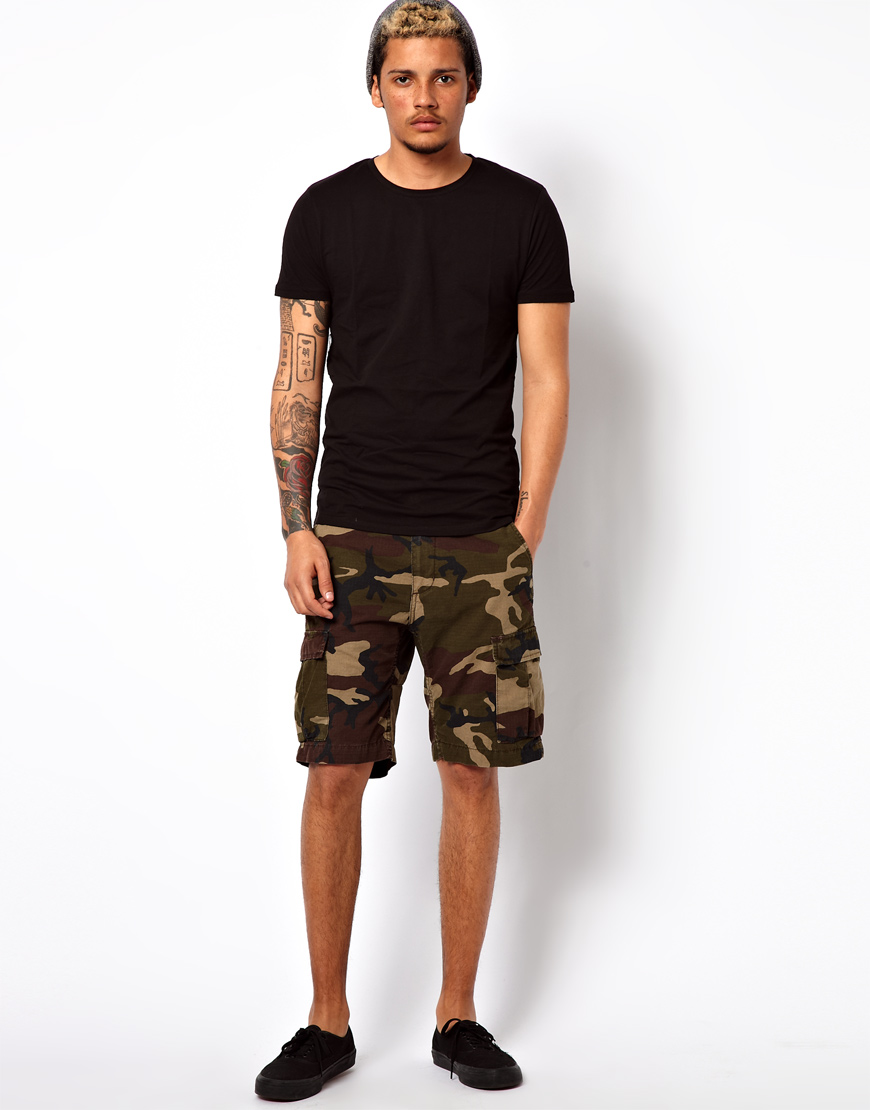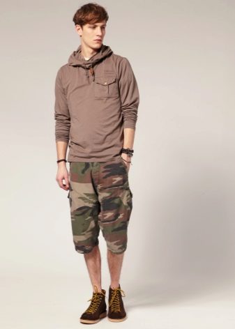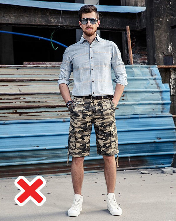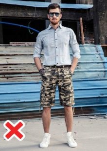 Kombinieren Sie keine Army-Shorts mit einem klassischen Hemd. In diesem Fall ist es besser, ein schlichtes T-Shirt in beruhigenden Farben zu wählen. Es ist besser, Armeeshorts durch Cargo zu ersetzen. Dank der aufgesetzten Taschen dieser Modelle können sich Männer auch mit Übergewicht sicher fühlen.