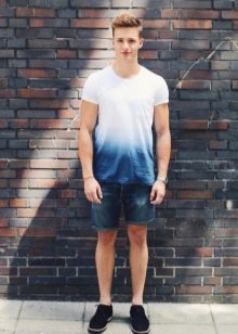 Die sicherste Option ist eine Kombination aus Beige-, Weiß- und Blautönen. Für T-Shirts mit einem hellen Muster können Sie einfarbige helle Shorts wählen. Ein solches Set wird hell und ungewöhnlich aussehen und eine positive Stimmung erzeugen.