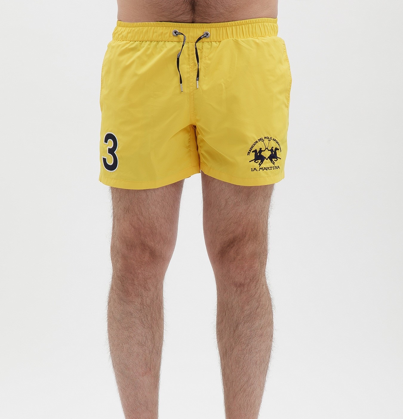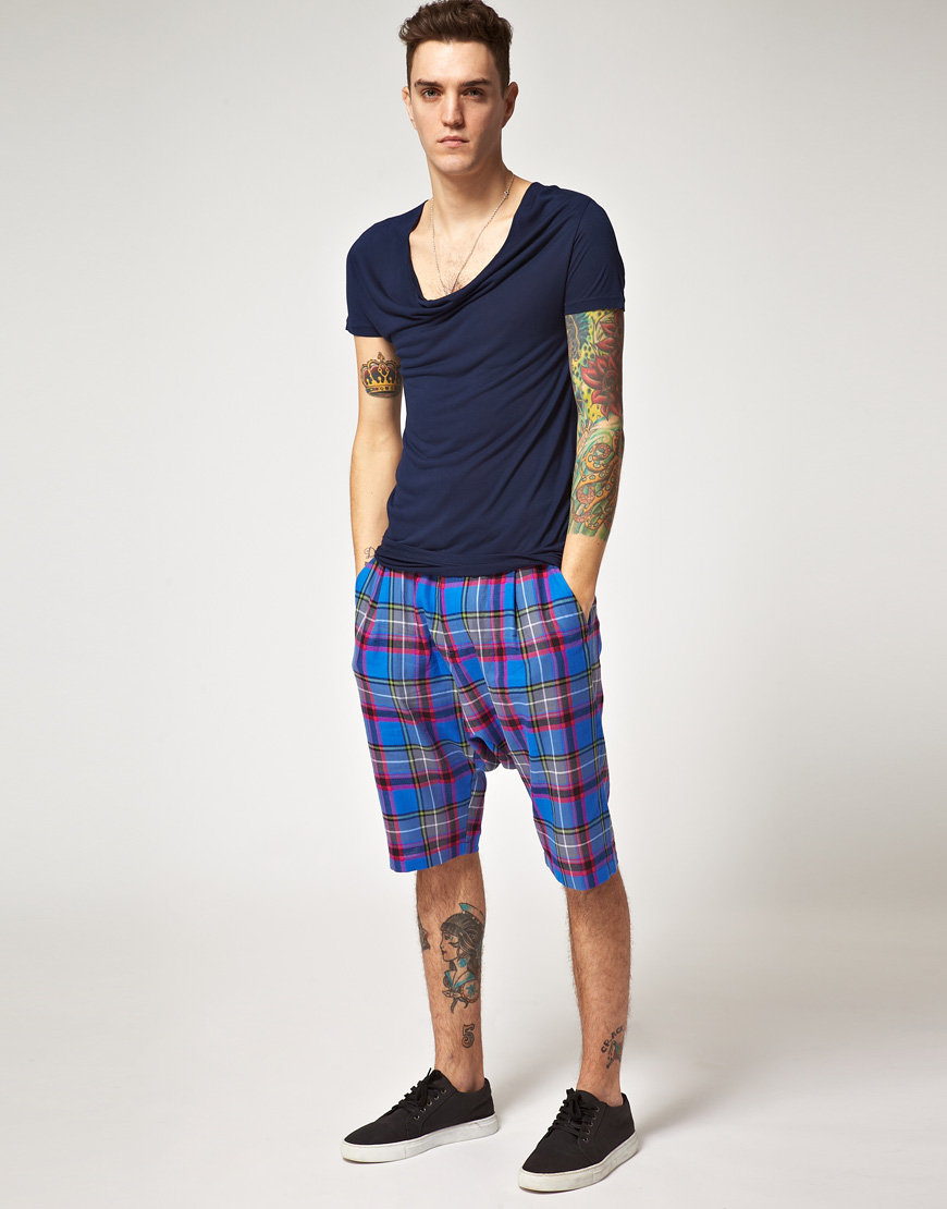 Neben dem gestreiften Stoff solltest du auf die karierten Shorts achten.