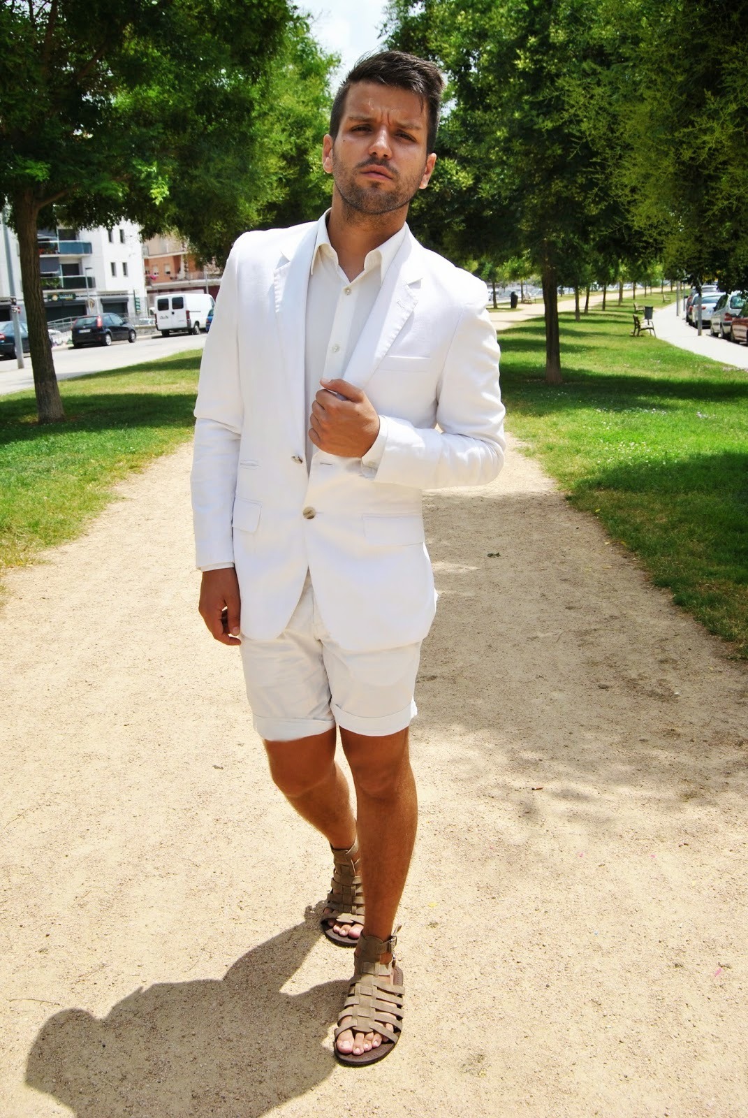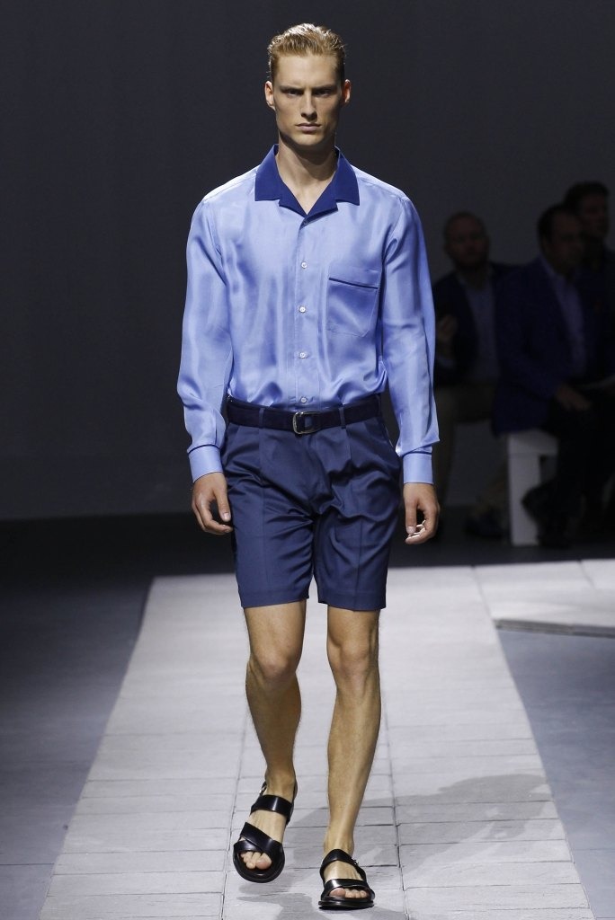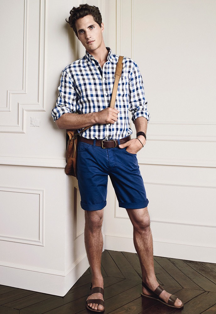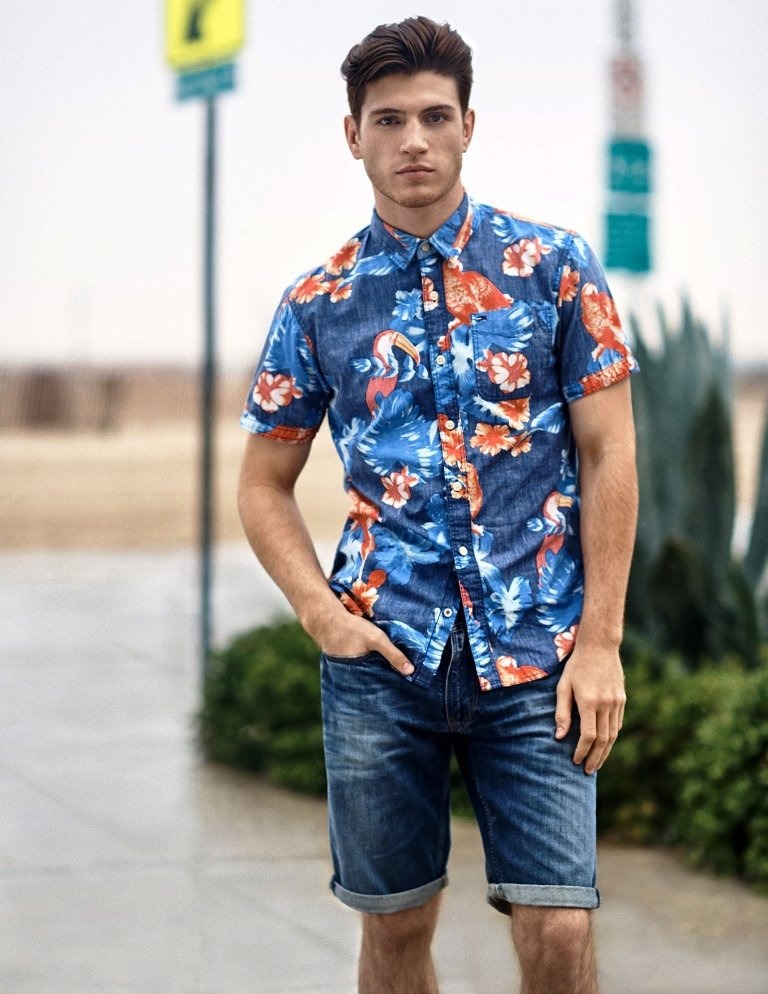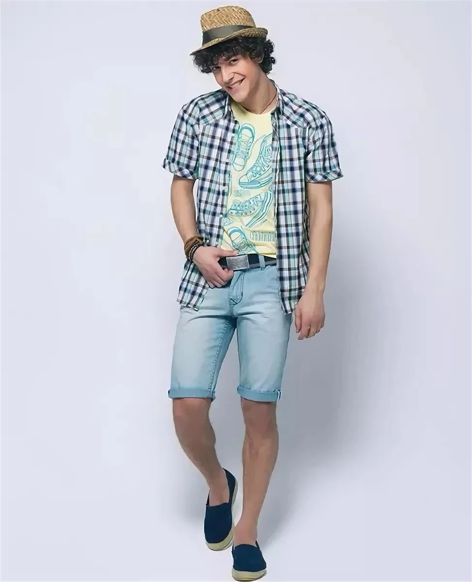 Nicht weniger oft tragen Männer im Sommer blaue Hemden. Die besten Kombinationen werden mit weißen, beige, grauen Shorts erzielt.