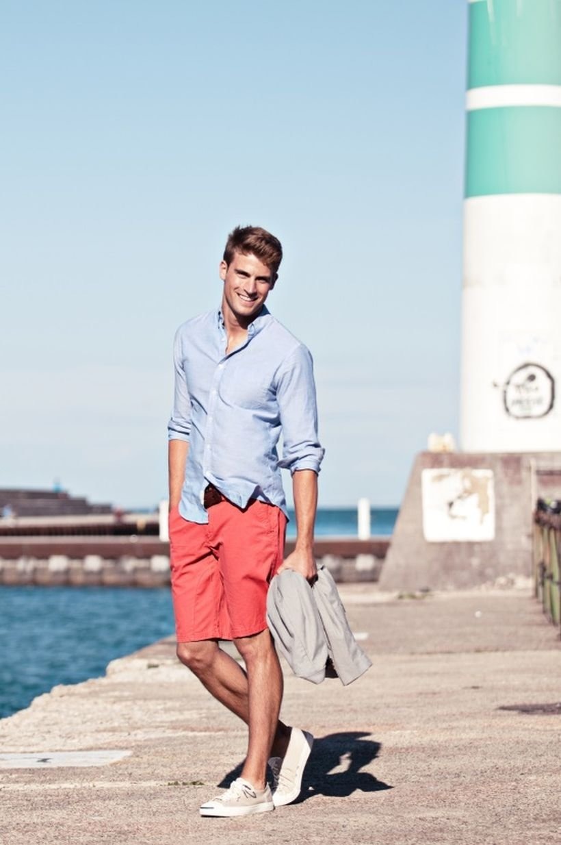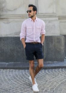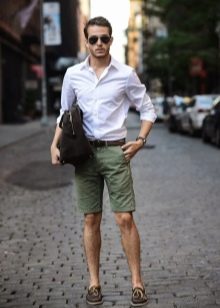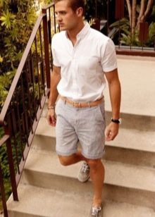 Die zweite Nuance ist die richtige Wahl der Garderobenartikel. In Kombination mit einem Hemd sehen 3 Arten von Herrenshorts gut aus: