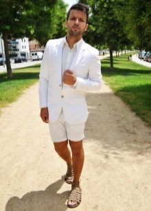 Das weiße Hemd ist ein Klassiker. Ein solches Kleidungsstück sieht gut aus mit Shorts in jedem Farbton. Das Bild entpuppt sich als etwas zurückhaltend und sogar elegant, aber gleichzeitig entspannt. Ein komplett schneeweißer Bogen ist eine effektive Lösung. Natürlich ist zu bedenken, dass solche Kleidung nur auf einem gebräunten Körper schön aussieht.