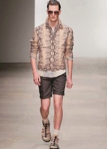 Früher wurden Shorts mit Hemd und Jacke getragen, was dem Image Strenge verlieh. Heute wird diese Technik fast nie verwendet. Wenn am Abend ein Kälteeinbruch erwartet wird, Sie können einen Strickpullover über Ihre Schultern werfen und ihn zu einem lockeren Knoten direkt über Ihrer Brust binden. Manche Leute tragen immer noch ein aufgeknöpftes Hemd über einem T-Shirt. Dieser Bogen hat eine ausgeprägte sportliche Note. Dies sollte berücksichtigt werden, obwohl solche Kleidung im Urlaub durchaus angemessen ist.