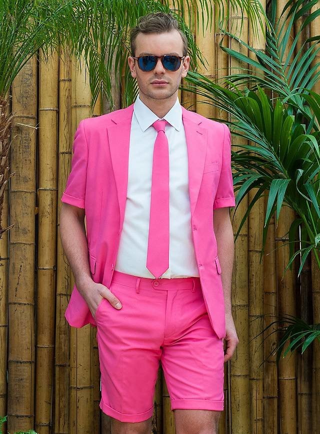 Wenn Sie sich für ein farbiges Hemd (wie Pink oder Lila) entscheiden, seien Sie vorsichtig mit den Farbkombinationen. Eine Win-Win-Wahl wäre in diesem Fall eine weiße, graue oder Jeanshose. Dementsprechend sollte der obere Teil des Bildes neutral sein, wenn Sie sich für helle Shorts entscheiden.