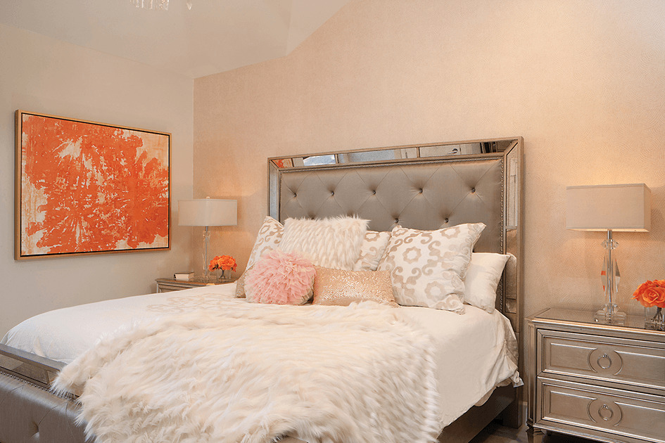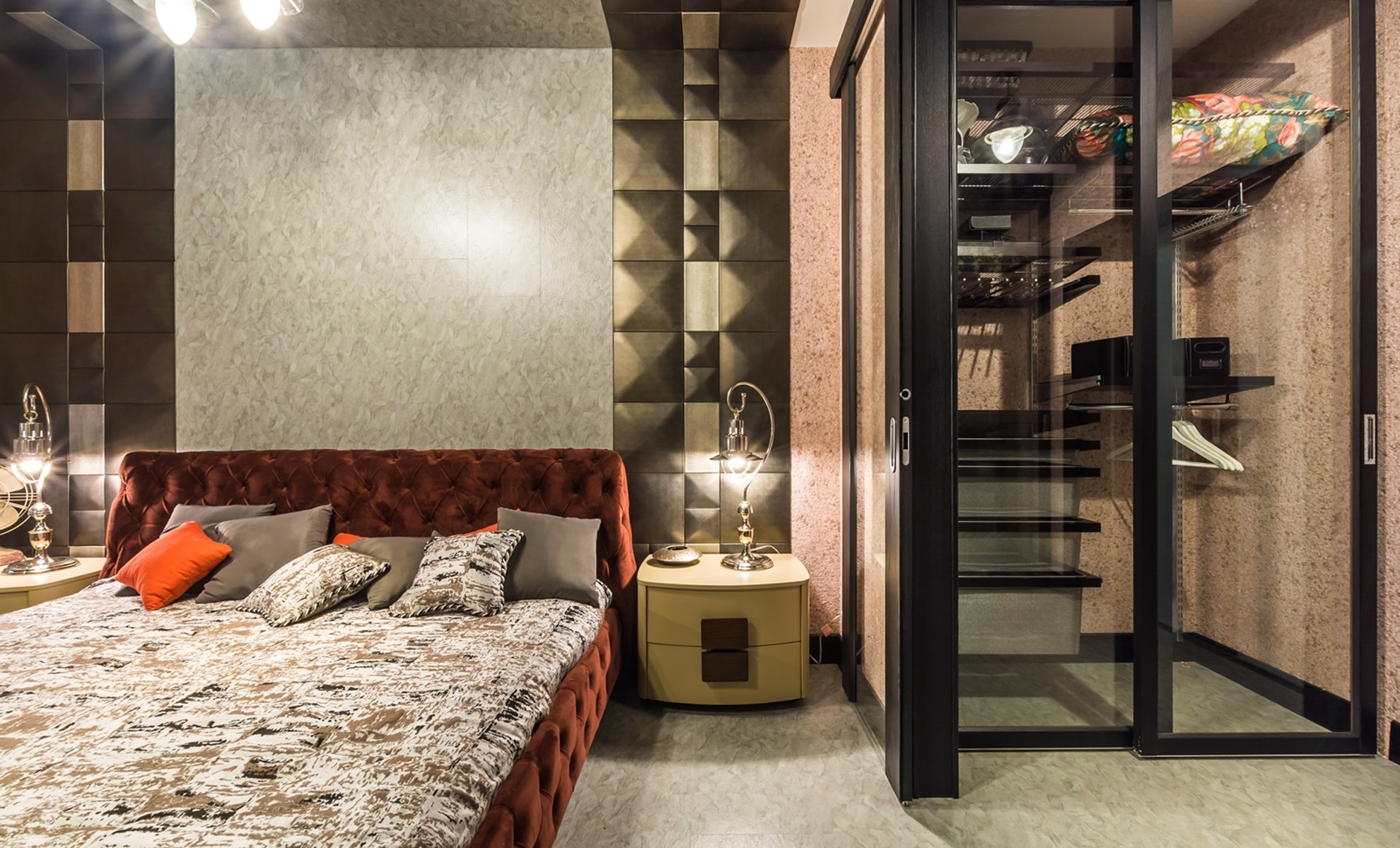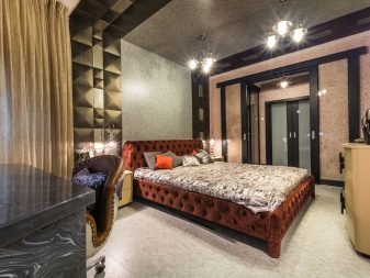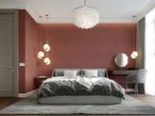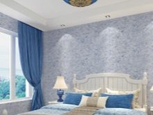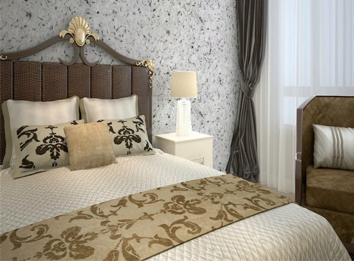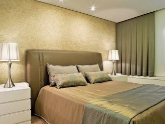 Wir bieten mehrere Beispiele für die Inneneinrichtung von Schlafzimmern mit Flüssigtapete: