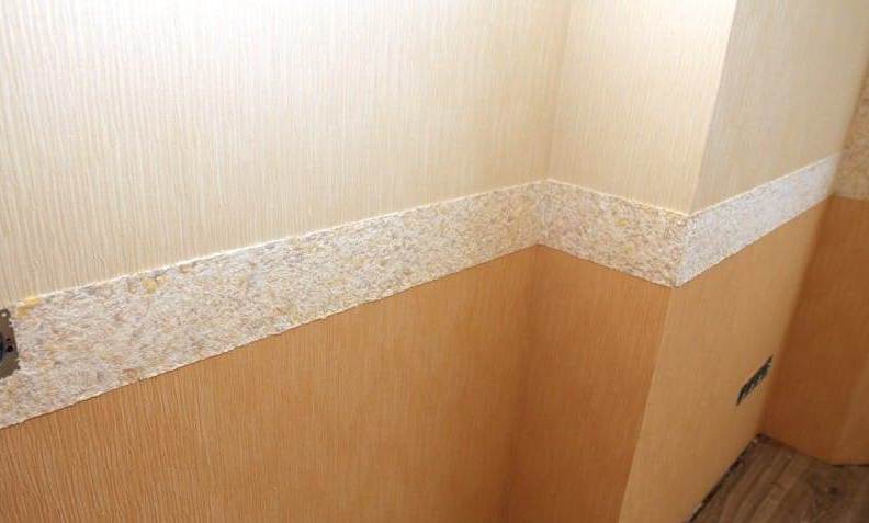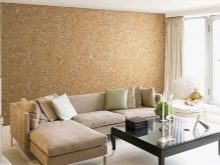 Es ist am besten, ein Finish mit einer ökologischen Zusammensetzung zu wählen. Es ist ungiftig, atmungsaktiv, gesundheitlich unbedenklich, langlebig und ästhetisch ansprechend. Es wird in einer dünnen Schicht aufgetragen, was gut ist, um ein Muster mit klaren Konturen zu erzeugen. Außerdem trocknet eine solche Tapete nach dem Anbringen an der Wand schneller.