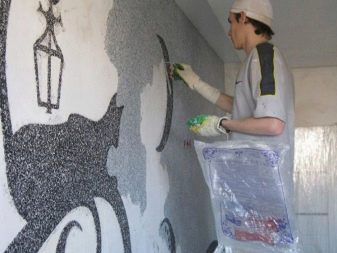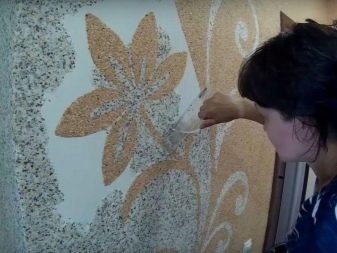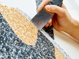 Bei der Arbeit wird ein Spatel verwendet. Beim Erstellen einer Beschichtung mit einem Muster sind sie während des Quellens der Zusammensetzung mit dem Design beschäftigt. Die Zeichnung wird mithilfe einer Vorlage angewendet. Mit einem vorgefertigten Muster können Sie Fehler beim Anbringen von Tapeten vermeiden.