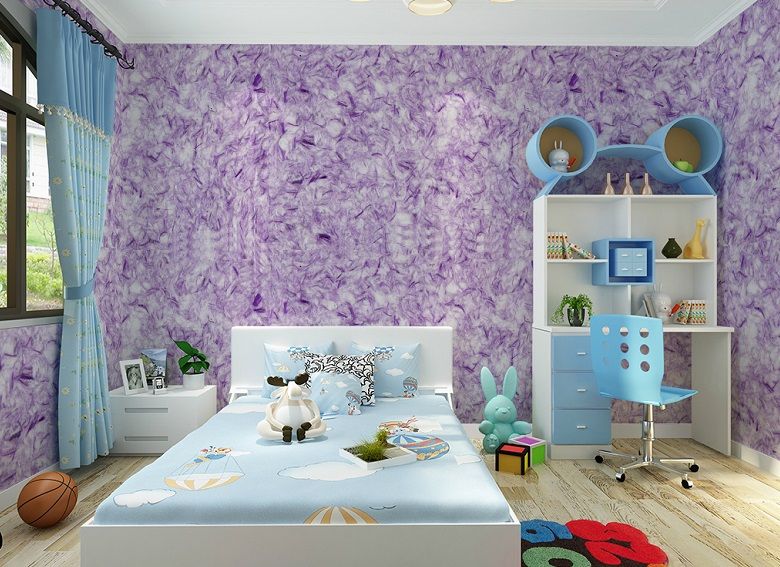 Die Farbpalette der Flüssigtapete umfasst über 200 verschiedene Farbtöne. Es umfasst ruhige, gedeckte und helle Farben. Darüber hinaus wird flüssige Tapete oft getönt, wodurch die Farbe des Untergrunds nach Ihren Wünschen verändert wird. So können Sie der Oberfläche der Wände des Schlafzimmers Vielseitigkeit verleihen.