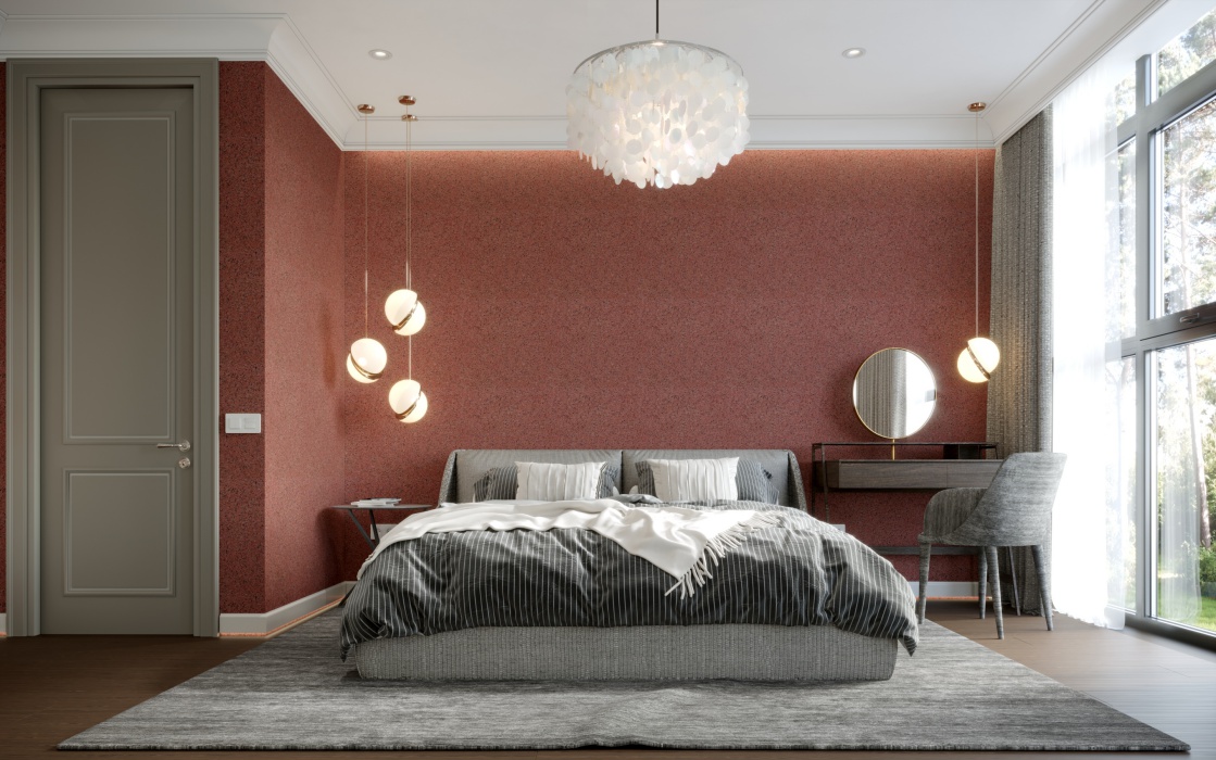 Die Verwendung von Flüssigtapeten im Schlafzimmer hat viele Vorteile. Das Verkleidungsmaterial ist anders: