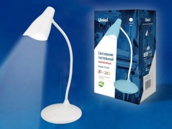 - Für den Schreibtisch. Solche Produkte werden verwendet, wenn sich im Raum ein Arbeitsplatz befindet. Eine Leuchte dieser Art sollte stark genug sein, aber gleichzeitig klein.