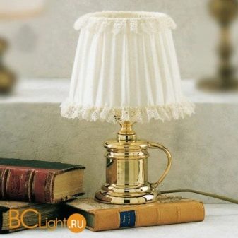 - Land. Rustikale Leuchten werden oft mit Glühbirnen verziert, die Kerzen simulieren, sowie verschiedenen Schmiedeeisenteilen. Diese Tischleuchten passen perfekt in ein Interieur im Landhaus- oder Provence-Stil. Massive Strukturen sehen schön aus. Sie können sowohl auf Nachttischen als auch auf Holzregalen platziert werden.