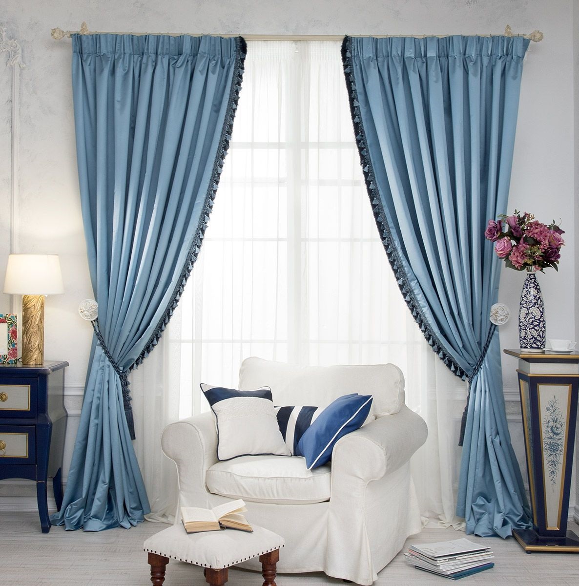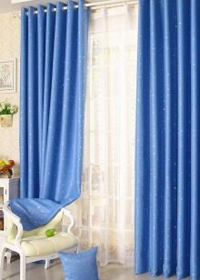 - Blau. Helle Blautöne helfen, nervöse Anspannung zu lindern. Ein Raum mit Vorhängen dieser Farbe wird naive und verträumte Menschen ansprechen. Vorhänge werden am besten mit hellen Oberflächen und den gleichen Möbeln kombiniert.