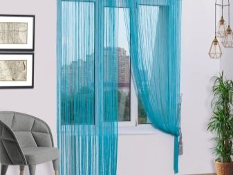 Diese Vorhänge sehen ziemlich ungewöhnlich aus. Am häufigsten werden sie verwendet, um Schlafzimmer zu dekorieren, in denen kreative Menschen leben. Sie bestehen aus einer Vielzahl von Fäden. Diese Vorhänge werden aus verschiedenen Materialien hergestellt. Am häufigsten werden hierfür Kunststoff-, Metall- oder Farbperlen verwendet. Darüber hinaus können sie mit improvisierten Mitteln mit eigenen Händen hergestellt werden. Diese Vorhänge werden in einem High-Tech- oder Fusionsraum großartig aussehen.