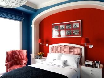 Diese Farbkombination ist die ungewöhnlichste von allen zuvor beschriebenen. Aber wenn Sie die richtigen Rot- und Blautöne wählen, können Sie Ihren Raum originell und einzigartig machen.