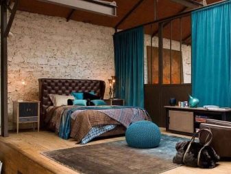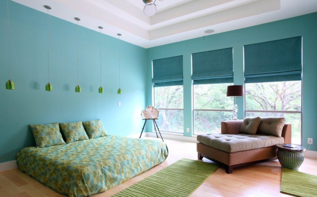 - Blau Grün. Vorhänge dieser Farbe eignen sich gut für die Dekoration eines Schlafzimmers in Kombination mit einem Arbeitsplatz. Psychologen sagen, dass dieser Farbton es Ihnen ermöglicht, Ihr Selbstvertrauen zu steigern, die Kontrolle über alle Emotionen zu übernehmen und sich auf eine Arbeitsstimmung einzustellen. Diese Farbe wird nicht für die Verwendung in einem kleinen Schlafzimmer empfohlen.