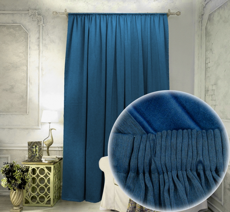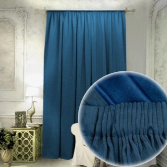 - Samt. Dieses Material ist ideal für die Dekoration von Räumen im klassischen Stil. Blauer Samt sieht luxuriös aus und trägt dazu bei, eine feierliche Atmosphäre im Raum zu schaffen.