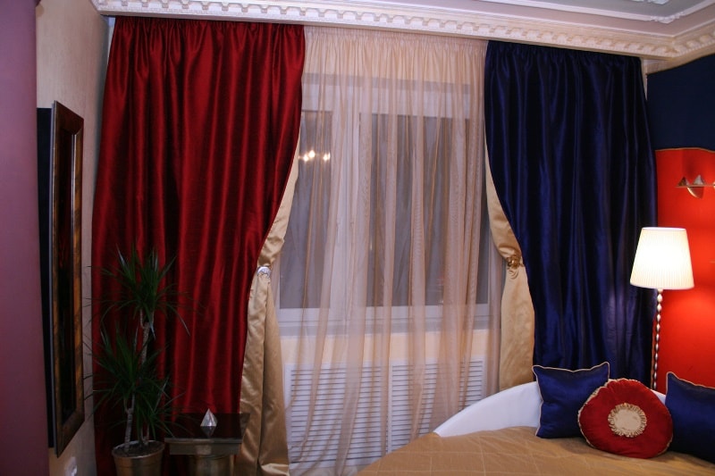 Zum Nähen von Vorhängen werden unterschiedliche Materialien verwendet. Im Schlafzimmer können Sie sowohl synthetische Vorhänge als auch aus Naturstoff genähte Vorhänge aufnehmen.
