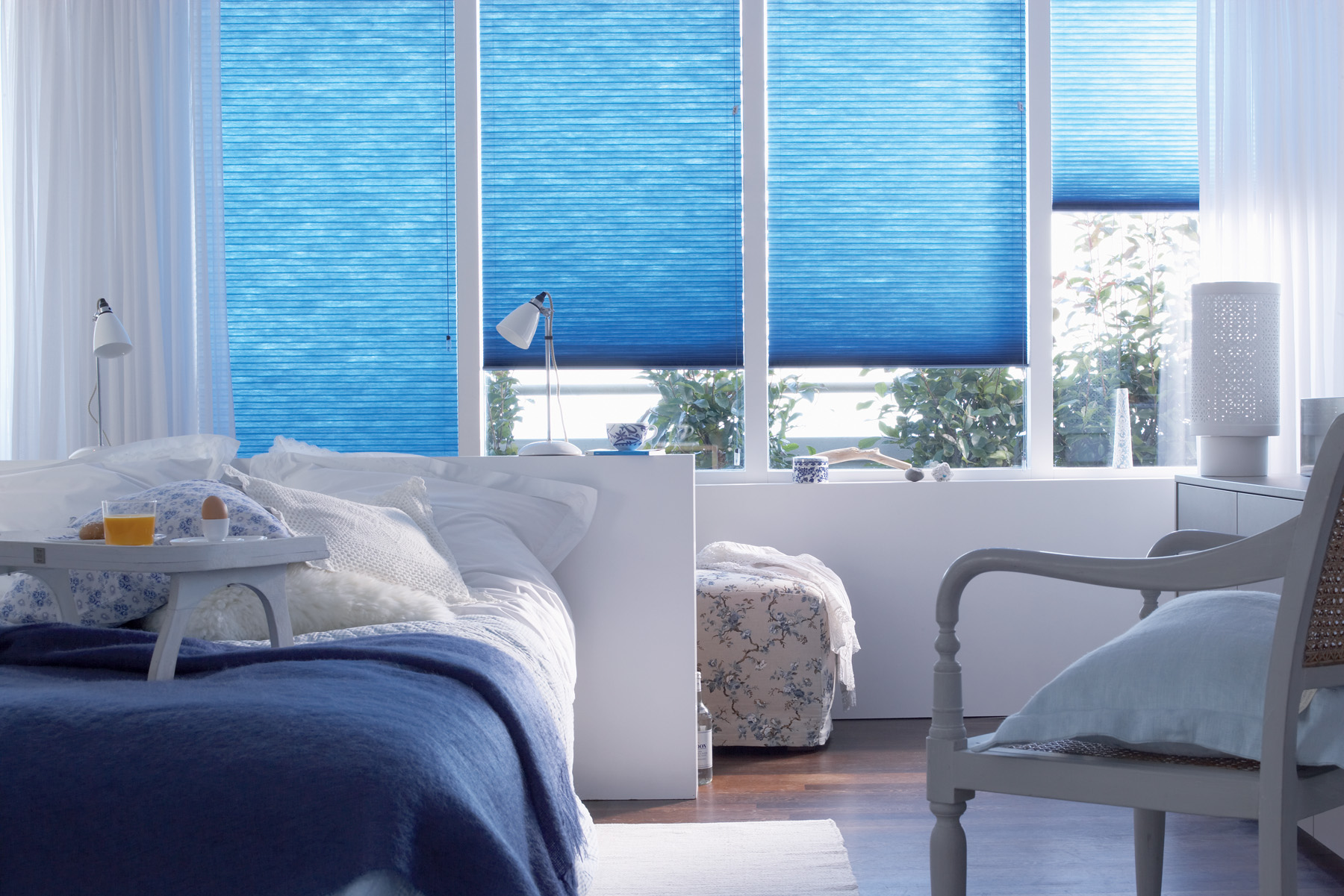 Bei der Auswahl blauer Leinwände sollten Sie auf deren Lichtdurchlässigkeit achten. Jalousien sind: