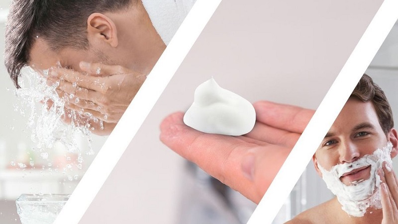 Gehen Sie nicht davon aus, dass nur Frauenhaut einer besonderen Pflege bedarf. Bei Männern arbeiten die Talgdrüsen viel intensiver, daher sollte die Haut sorgfältiger gepflegt werden. Nur das Gesicht zu waschen und Seifenlauge zu verteilen, reicht oft nicht aus. Wenn die Borsten hart und dick sind, müssen Sie zuerst kräftig dämpfen, dh 2-3 Minuten mit heißem Wasser waschen. Erst danach kann das Rasierprodukt aufgetragen werden. Es ist ratsam, sich etwa eine halbe Stunde nach dem Aufwachen zu rasieren... Es ist notwendig, dass die nächtliche leichte Schwellung Zeit hat, um zu verschwinden, um Schnitte und Kratzer zu vermeiden. Nach dem Dämpfen wird die Rasierzusammensetzung in einer dünnen Schicht mit leichten kreisenden Bewegungen aufgetragen.