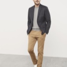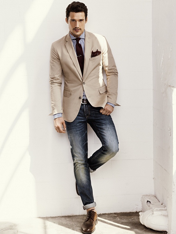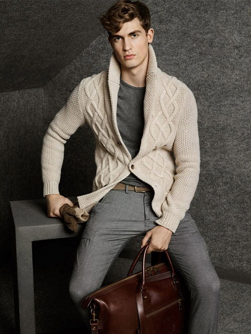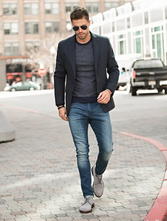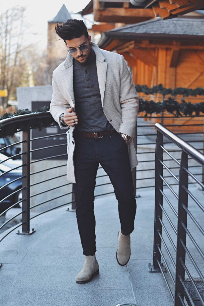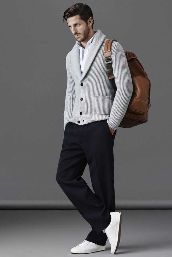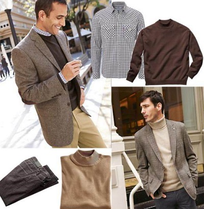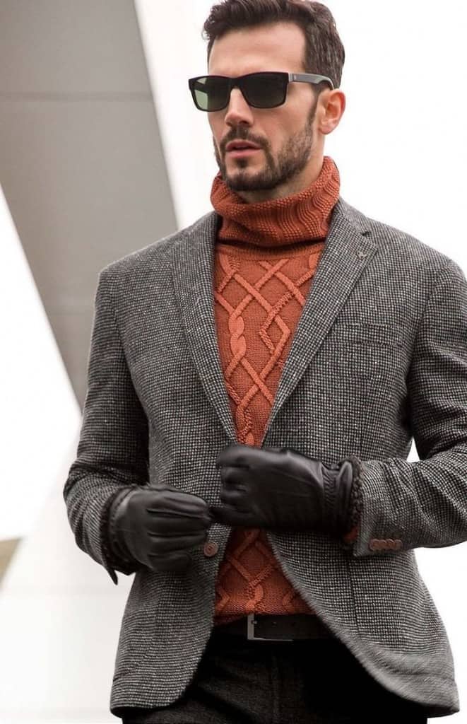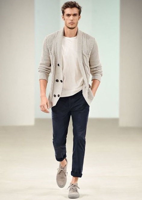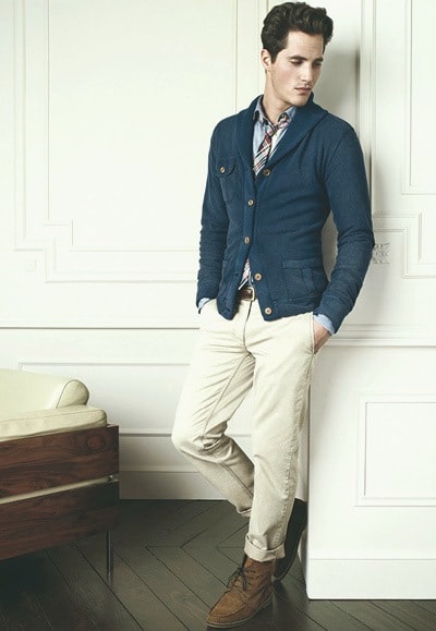- Hier ist ein schicker Casual-Look für kühles Wetter. Ergänzen Sie einen Rollkragenpullover oder einen dünnen eleganten Pullover mit einer warmen Hose. Sie können aus Wolle, Tweed oder Cord bestehen. Ein Vintage-Blazer und Desert Boots machen den Look noch gemütlicher – Wildlederstiefel mit Kreppsohlen mit zwei oder drei Paar Spitzenlöchern. Für diejenigen, die Rollkragenpullover mit langem Kragen nicht mögen oder ihnen nicht passen, können Sie ein Polo mit einer Strickjacke anbieten.