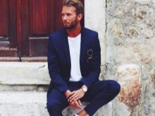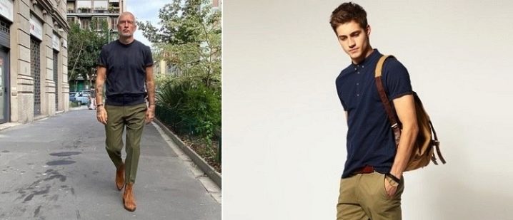 - Auf den ersten Blick eine schlichte, aber sehr stylische Kombination. Dunkles T-Shirt, olivgrüne Anzughose, Wildleder-Chelsea und passende Uhr. Dieser Bogen sieht nicht nur relevant, sondern auch ein wenig brutal aus. Geeignet für Männer, die sich nicht zu jugendlich kleiden und die Männlichkeit in ihrem Aussehen bewahren möchten.