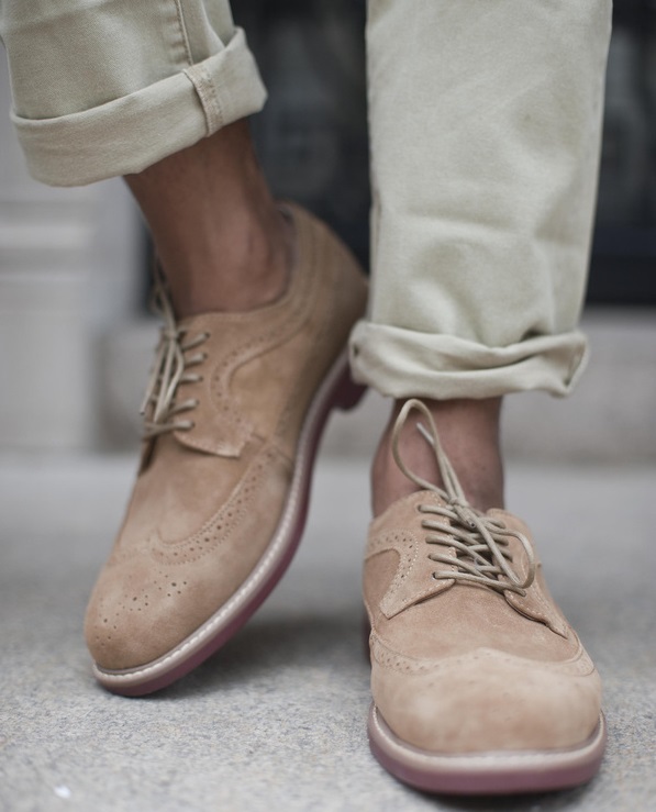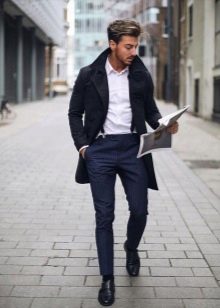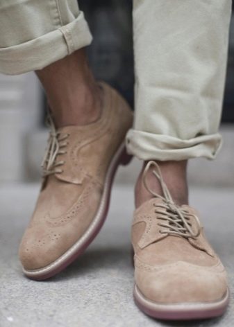 Besser noch, hol dir ein Paar Derbys... Ihre Seiten sind über die Vorderseite genäht. Das heißt, wenn Sie die Schnürsenkel lösen, divergieren ihre Seitenteile frei zu den Seiten. Sie lassen sich um fast 180 Grad biegen und dieses Schuhmodell kann wahlweise mit modischer Perforation oder ohne sein. Sneakers passen mit einigen Vorbehalten in eine solche Schleife. Natürlich müssen sie teuer und von hoher Qualität sein. Schlichte Modelle mit gepflegtem Schnitt, die nicht sportlich wirken, reichen aus.