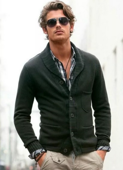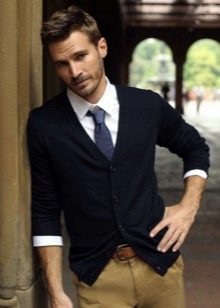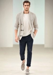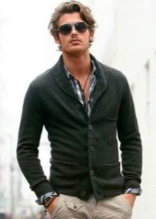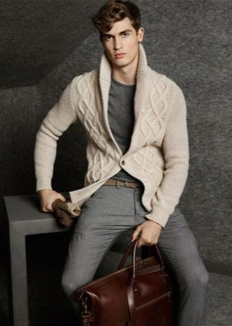 Es kann über einem sehr einfachen T-Shirt ohne Druck oder Dekor getragen werden. Die Strickjacke kann sowohl in kleiner als auch in großer Strickform getragen werden, mit elegantem V-Ausschnitt oder großem voluminösem Kragen, mit Reißverschluss oder mit Knöpfen.