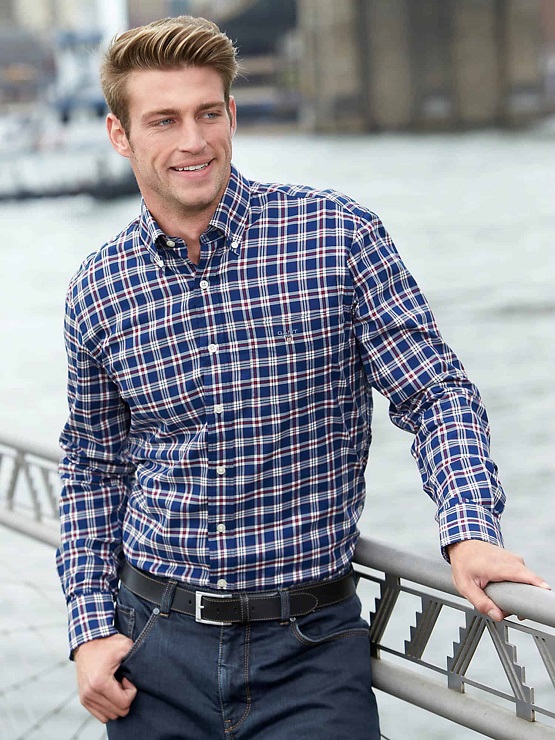 Sie sind in diesem Stil viel passender als T-Shirts.... Karierte Optionen passen perfekt in einen solchen Kleiderschrank. Bei heißem Wetter werden Leinenhemden oder T-Shirts ausgewählt. Eine weitere Option sind Oxford-Button-Down-Hemden. Sie bestehen aus strukturierter Baumwolle und haben ihre eigenen Designmerkmale - einen Button-Down-Kragen und einen "lockeren" Schnitt.