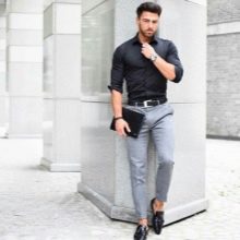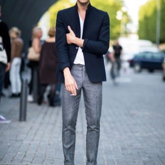 Die Farben sind meist dunkel, aber im Sommer können Sie beige, sand oder hellgraue Leinenmodelle tragen. Im Winter eignen sich Stoffe mit Wollzusatz. Es ist besser, eine schlichte Hose ohne Drucke zu wählen.