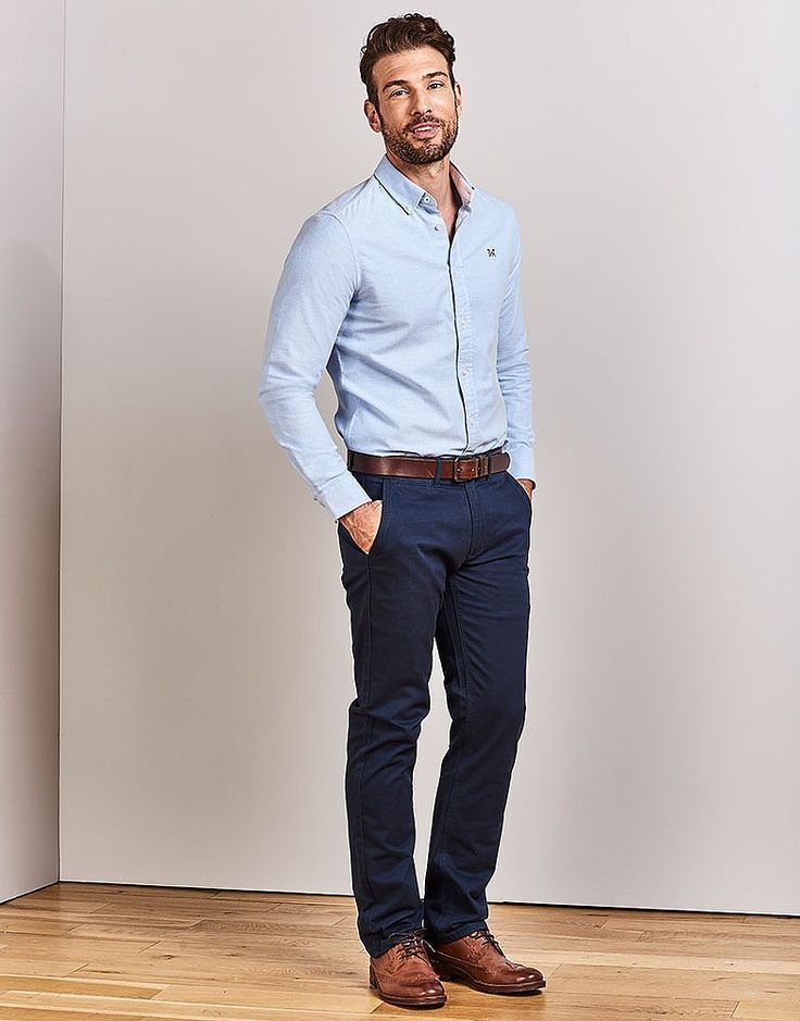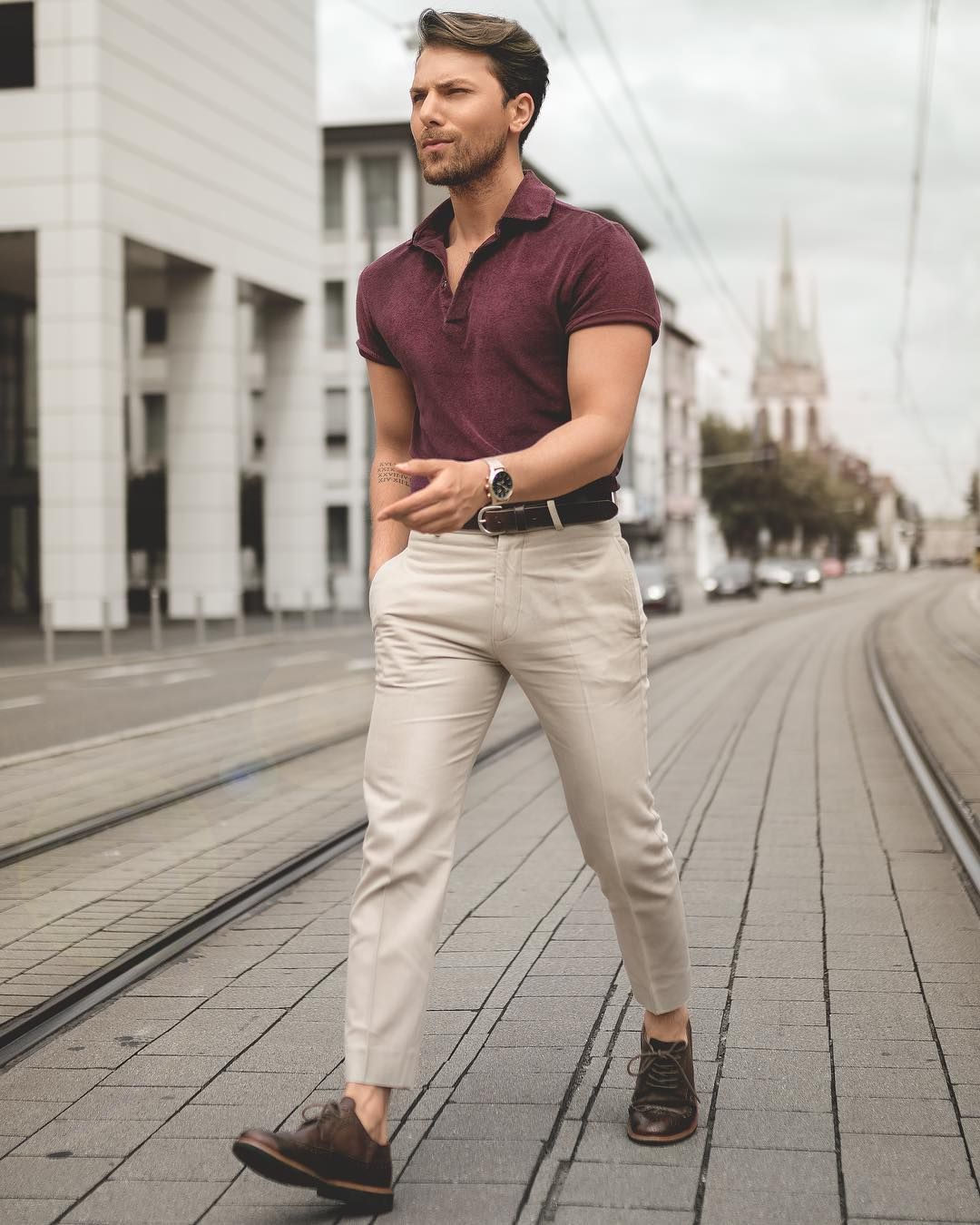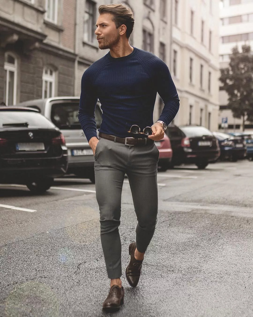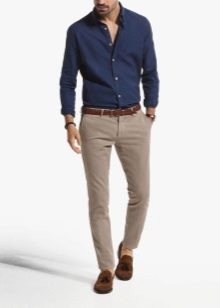 Die optimale Lösung für Business Casual sind Chinos. Sie sind nicht zu formell, wirken aber fester als Jeans. Die Passform sollte leicht locker sein und die Beine sollten nicht zu eng sein. Dieses Modell ist auch für übergewichtige Männer geeignet. Und auch klassische Hosen sind immer bürorelevant.