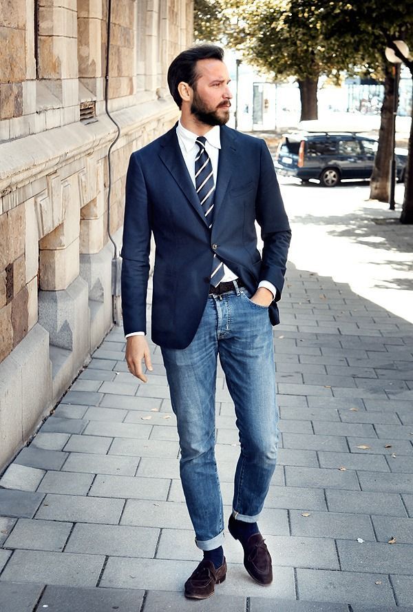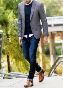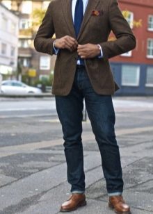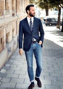 In einigen Fällen können Sie Jeans tragen, diese sollten jedoch so diskret wie möglich sein. Es ist besser, sie mit einer Jacke und einem Hemd zu kombinieren, damit das Image die Business-Merkmale behält und nicht zu einer einfachen Alltagsschleife wird.