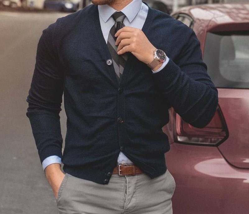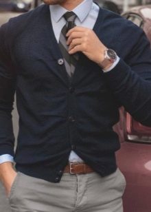 Business Casual ermöglicht es Ihnen, Modelle zu wählen, die sich farblich von Ihrer Hose unterscheiden. Sie können interessante Kombinationen mit verschiedenen Tönen erstellen. Erlaubt sind nicht nur klassische Schnittprodukte, sondern auch Cardigans oder Blazer.